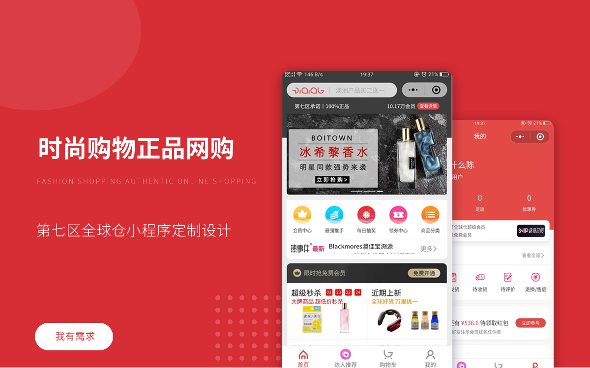 基于小程序平台开发的跨境电商系统,普通用户成为会员后,从而享受第七区全球仓购买商品零利润,同时平台集合了秒杀,砍价,会员分享等系统。