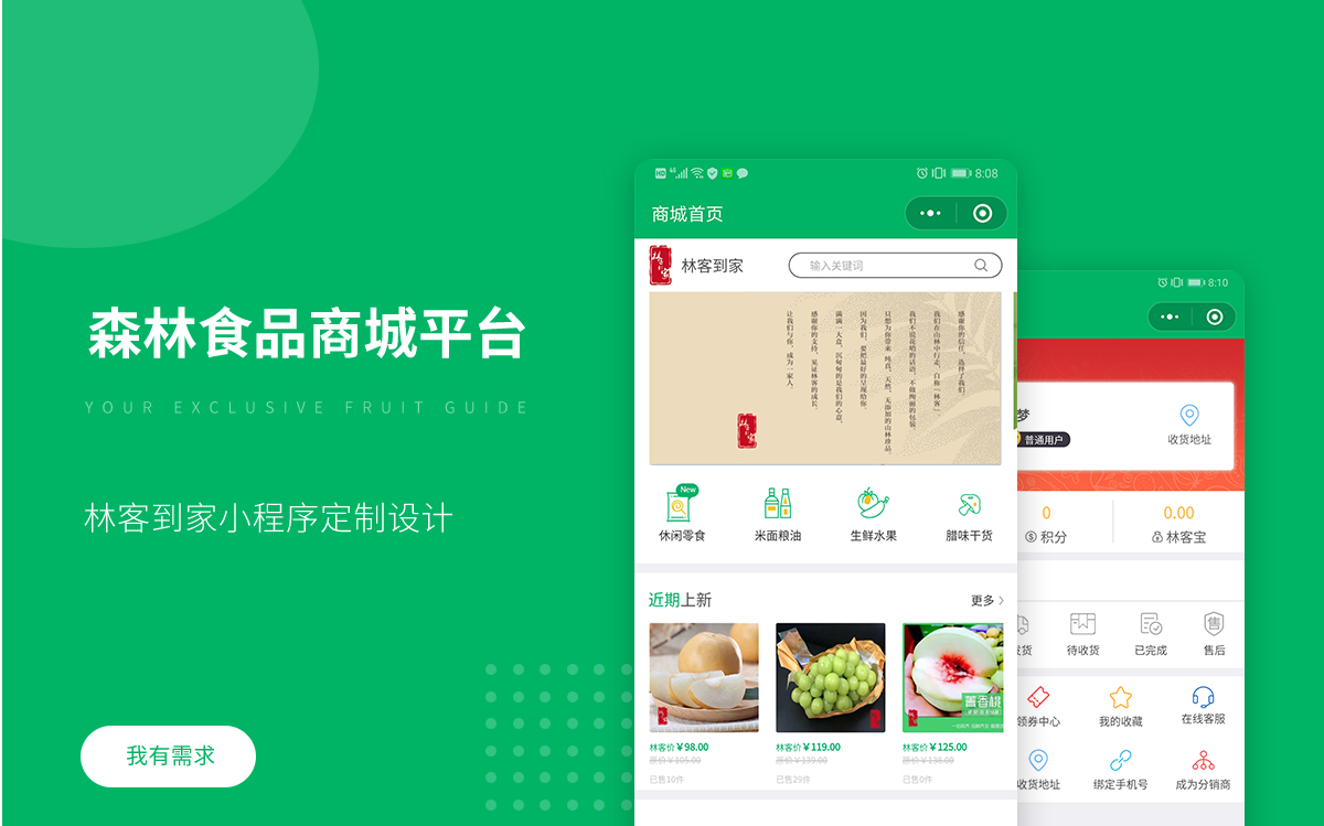 林客到家小程序商城,实现农副产品、竹木加工产品等在线上的销售,统一对产品进行包装、运营、推广,择优选择各领域优秀企业,打造“林客到家”品牌集群,形成一个良性电子商务生态圈。